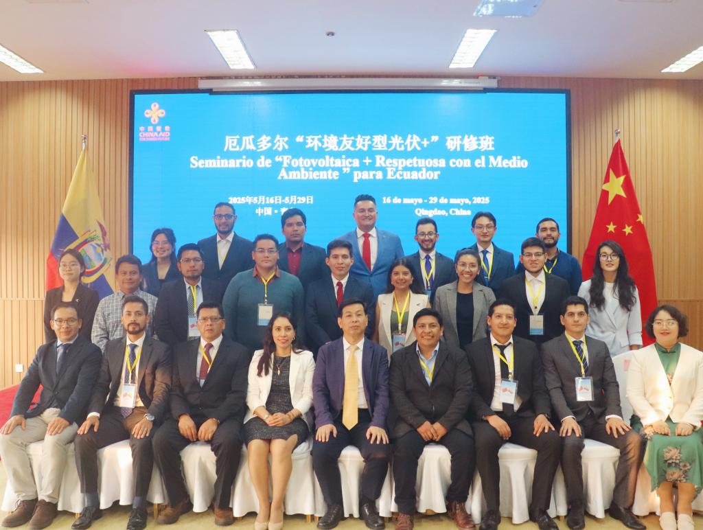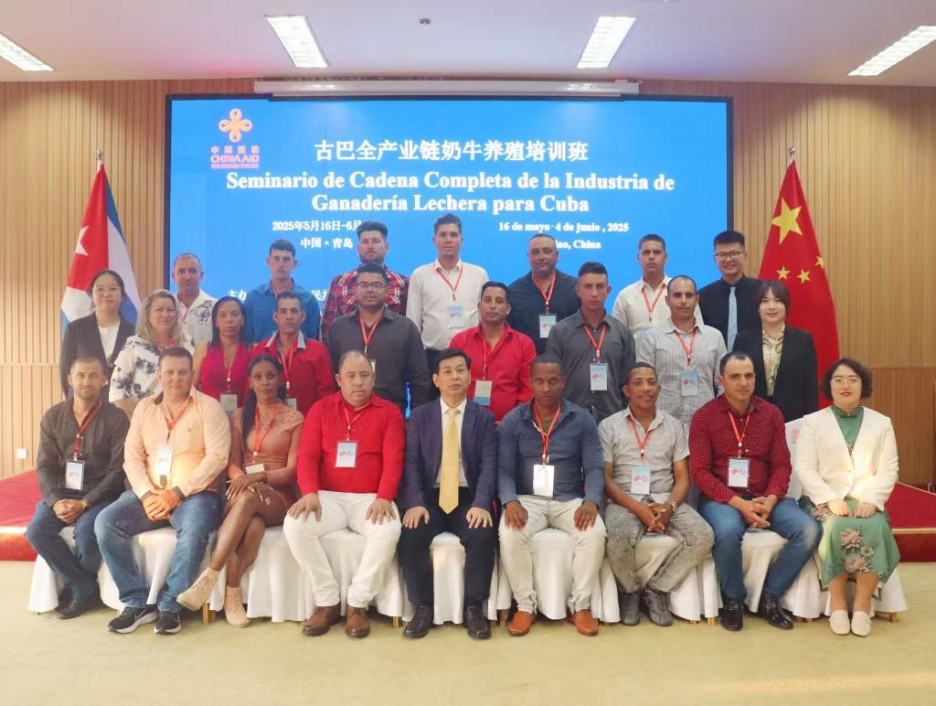 谷现海对古巴、厄瓜多尔学员的到来表示热烈欢迎。他指出,中国同拉美和加勒比地区虽然相距遥远,但双方友好交往源远流长。中拉在农业粮食、能源矿产等传统领域有着深度合作,也在清洁能源、5G通信、人工智能等新兴领域不断探索新的合作模式。此外,他还详细介绍了我国在畜牧业、光伏领域的发展成就以及山东省、青岛市在相关领域的发展现状,希望学员们能够通过培训深入了解中国在畜牧、光伏方面的前沿知识和发展经验,为学员的工作带来有益启发,并以培训为契机,推动各方之间深入合作。