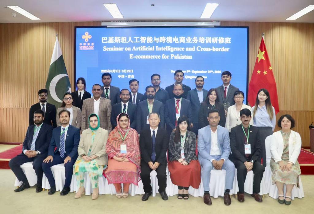 9月9日,由商务部主办、我院承办的巴基斯坦人工智能与跨境电商业务培训研修班在青岛举行开班仪式。学院副院长孙巧奎出席开班仪式并致辞,巴基斯坦商务部服务与电子商务处处长阿斯玛·哈塔克女士作为学员代表发言,来自巴基斯坦商务部、经济事务部、财政部等相关单位的20名学员参加培训。