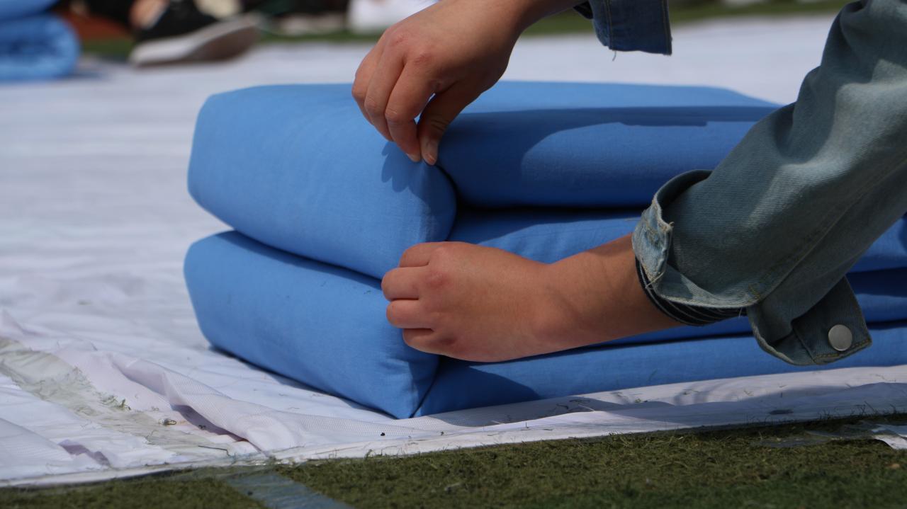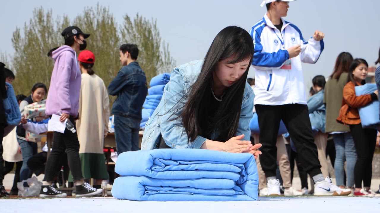 4月18日中午,财会金融系在操场举办“璀璨财金,‘被’添精彩”叠军被比赛。系党总支书记周新征、辅导员王营营及200多名学生参加了此次活动。