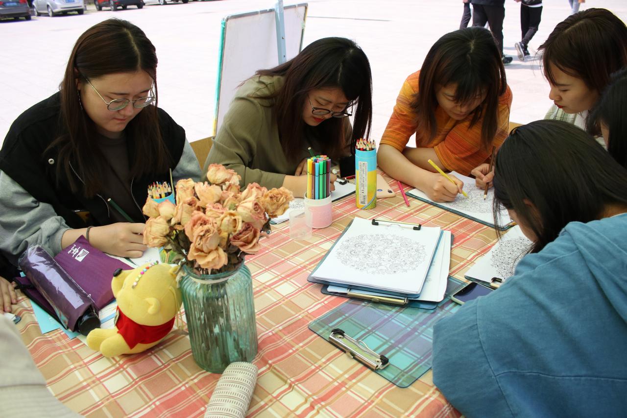 5月9日,由学生工作处心理健康教育与咨询中心主办的我院“5·25”大学生心理健康节“心灵慢递”和“涂色心灵”两项活动在青岛李沧校区图书馆广场举行。
