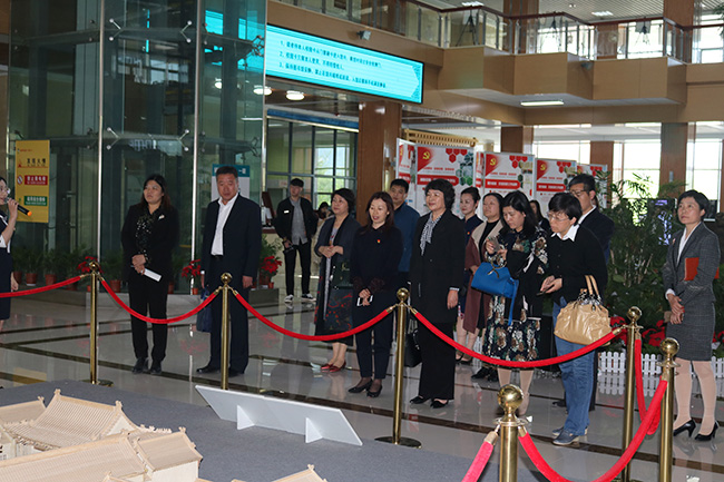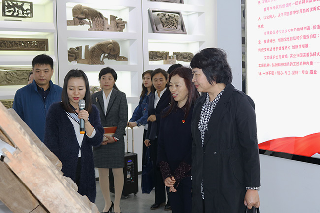 考察学习团一行受到山东城市建设职业学院热情接待。首先,参观学习党委履行主责、完善机制、夯实基础、创新载体、打造品牌的党建工作成果展;然后听取了样板党支部以“争创样板支部 夯实战斗堡垒”为主题的工作情况介绍。在学院党校,参观了党校环境建设、党校文化,观摩了智慧党建平台建设和使用情况。学习团一行还到古建筑构件收藏馆、校史馆及山东省广厦文化艺术研究中心等特色育人场所参观学习;在“双带头人工作室”参观了建筑环境设计VR创艺工作室、雕刻创艺实训基地和学生的创意作品。