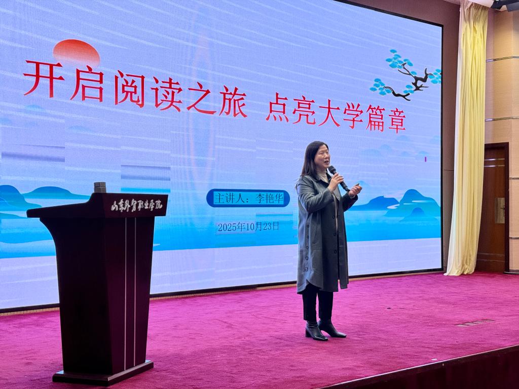 为提升大学生阅读素养和阅读能力,营造书香校园的浓厚氛围,10月23日下午,图书馆和基础教学部在学术报告厅联合举办“开启阅读之旅,点亮大学篇章”大学生阅读指导讲座。活动特邀基础教学部副主任李艳华担任主讲嘉宾,与300余名师生共话阅读之美,开启一场启迪心灵的智慧之旅。