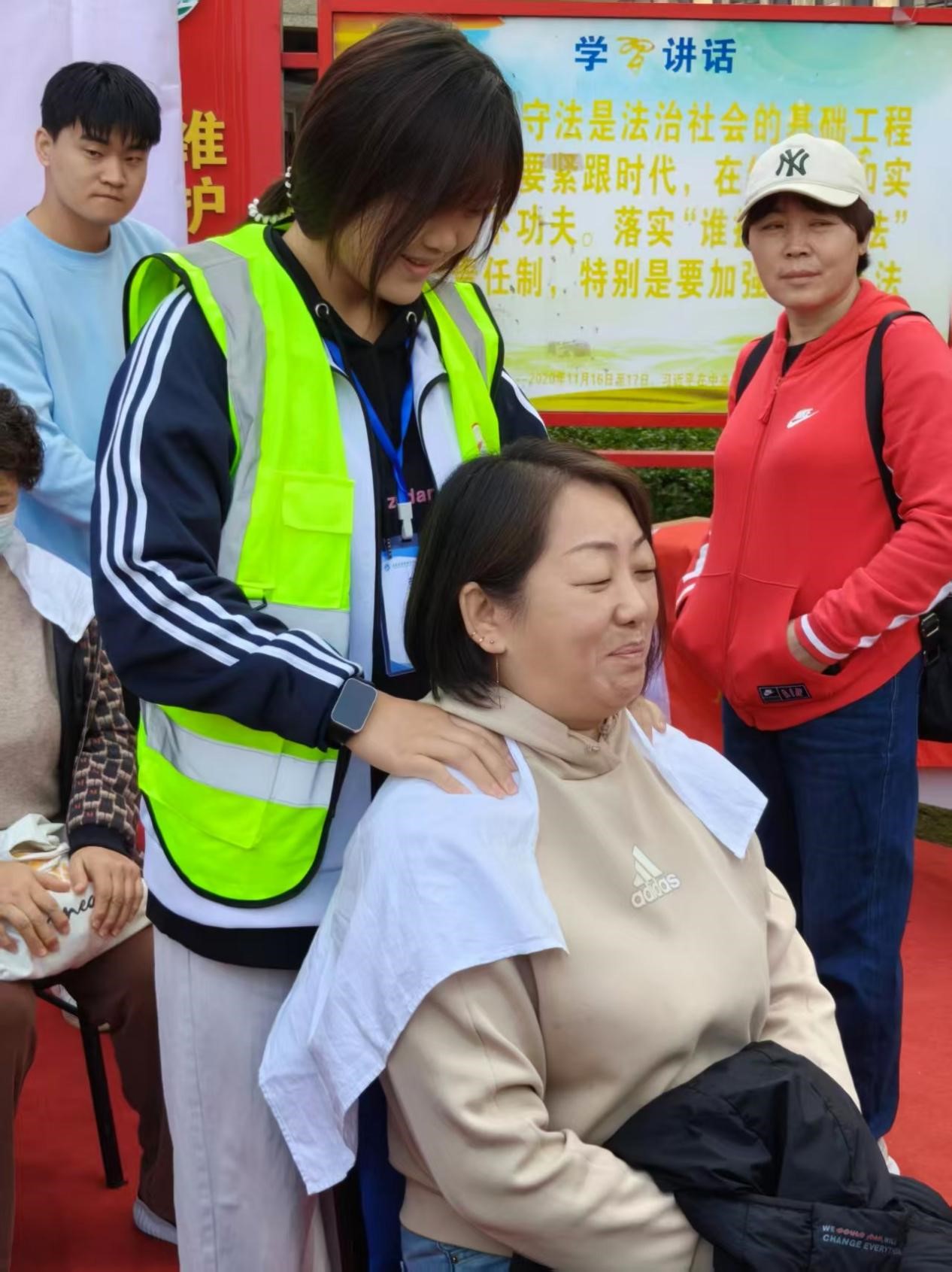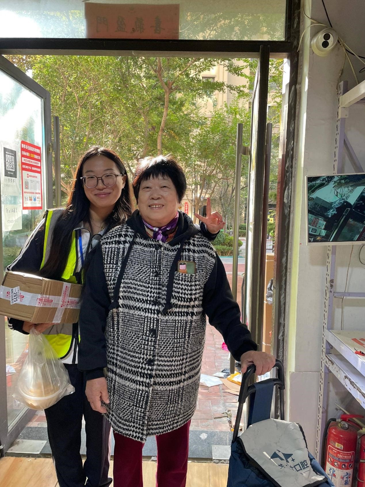 活动期间,同学们热情高涨,既分工协作又高效联动,深度参与社区志愿服务大集。他们协助摊主规范摆放商品,维护现场秩序,引导市民文明参与活动。针对老年群体,同学们还特别提供了“一对一”贴心服务,耐心讲解活动项目、热心搬运物资、主动分发快递,传递温暖与关怀。活动结束后,大家主动开展卫生清洁,助力营造整洁文明的社区环境。