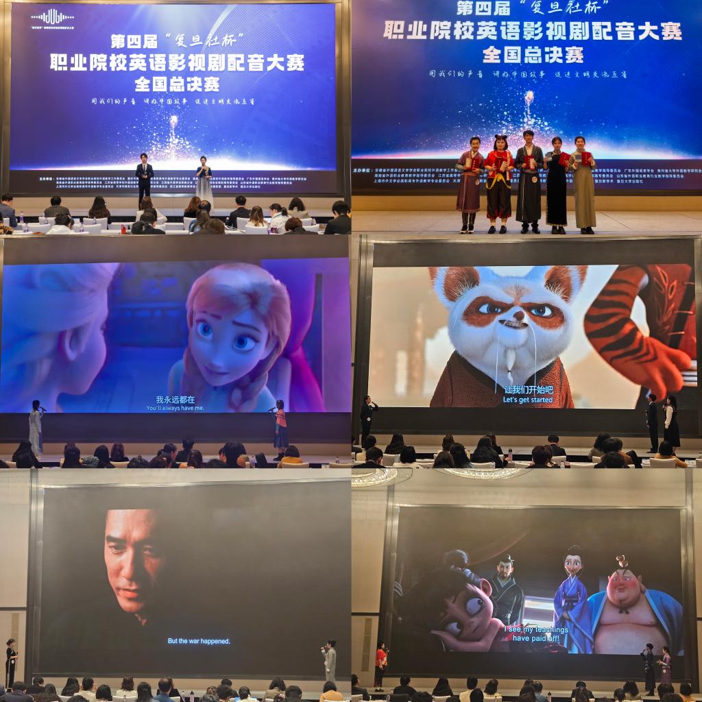 本次大赛面向全国职业院校学生开展,历经2个月的校级选拔、省级角逐,汇聚了20个省份及自治区426支复赛队伍激烈角逐,最终28支优秀参赛队伍晋级全国决赛。本次总决赛设置“自选片段”与“规定片段”双环节比赛项目,从内容思想性、语言模仿度和清晰流利度、仪态及情感等方面科学评价,是检验职业院校英语教学实践与素质教育融合的重要平台。我院公共英语部精心组织选拔比赛,择优组建学生队伍代表学院参加省赛,最终两支参赛队伍成功晋级全国决赛。在指导教师的悉心指导下,参赛团队反复打磨语音语调、台词节奏,不断优化作品的呈现效果。面对全国顶尖的参赛对手,两支队伍沉着应战、自信登场,精准把控影视角色的性格特点和情绪内核,用流利标准的英语表达、富有感染力的演绎,将影视片段的情节与情感生动还原,赢得了现场评委的高度认可和一致好评,最终凭借扎实的英语语言功底、生动的配音演绎和默契的团队协作,在众多参赛队伍中脱颖而出,斩获佳绩。