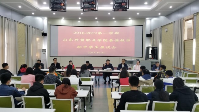 10月31日下午,泰安校区教务科组织召开旅游管理专业、国际商务专业期中学生座谈会,相关专业教研室主任及各班学生代表参加了座谈,会议由校区管委会副主任白珣主持。
