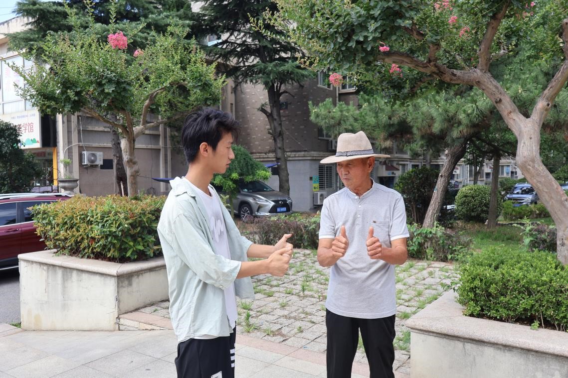 据统计,我国现有聋哑人群约2700万,由于社会手语普及率不足,聋哑人在就医、购物等日常场景中常面临沟通障碍。“塑声者”团队走进李沧区金秋小区开展手语推广实践活动,创新采用"1+1"互动教学法(1个手语动作+1个生活场景),将"喝水""谢谢"等10个手语动作与超市购物、医院挂号等生活场景结合,为20余名居民开展系统教学。此次实践不仅填补了该社区手语服务的空白,更探索出"场景化教学+邻里帮扶"的推广模式,有效提升了社区居民的手语沟通能力和助残意识,为团队持续深化手语推广工作、助力无障碍社会环境建设积累了宝贵经验。