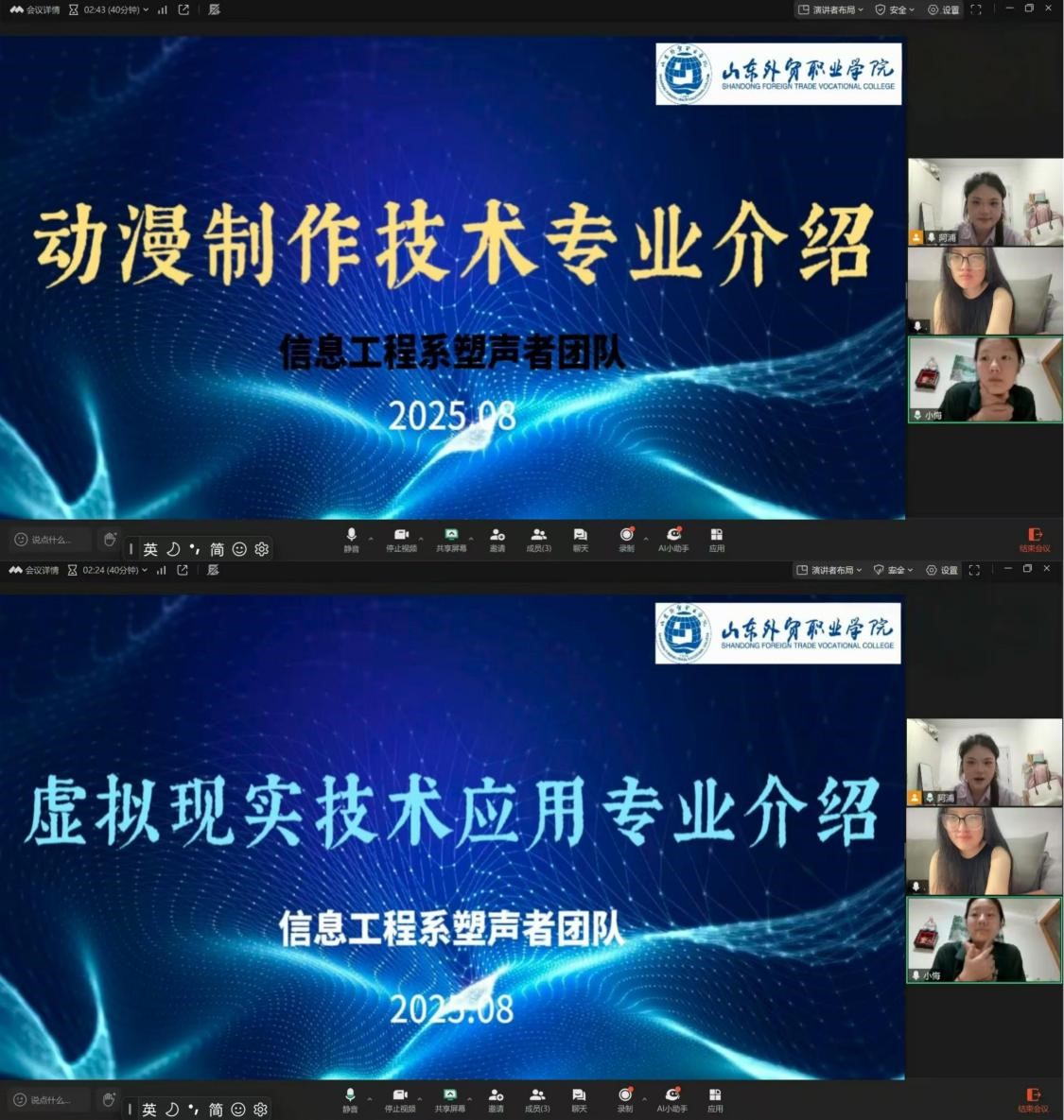 了解到她的故事后,团队在暑假期间多次通过线上连线的方式,为她提供力所能及的帮助。在线上交流中,团队成员们不仅关心她的生活和学习情况,还结合她的兴趣,详细讲解动漫制作技术和虚拟现实技术的应用专业相关知识。从角色设计、分镜脚本到3D建模和VR动画渲染,团队成员用图文和手语翻译工具耐心演示,帮助她更直观地理解专业知识。
