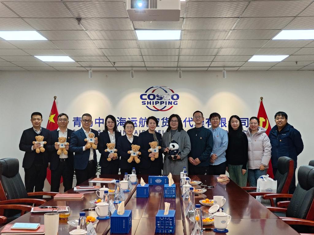 2025 年 12 月 3 日上午,国际运输与物流系与青岛中远海运航空货运代理有限公司党建共建暨校企合作签约仪式在青岛中远海运航空货运代理有限公司会议室隆重举行。青岛中远海运航空货运代理有限公司党委书记、总经理孙秋月,党委委员、副总经理戴巧玲等企业高管与国际运输与物流系领导班子及教研室负责人等老师共同出席活动,以党建为纽带开启校企协同育人新篇章。