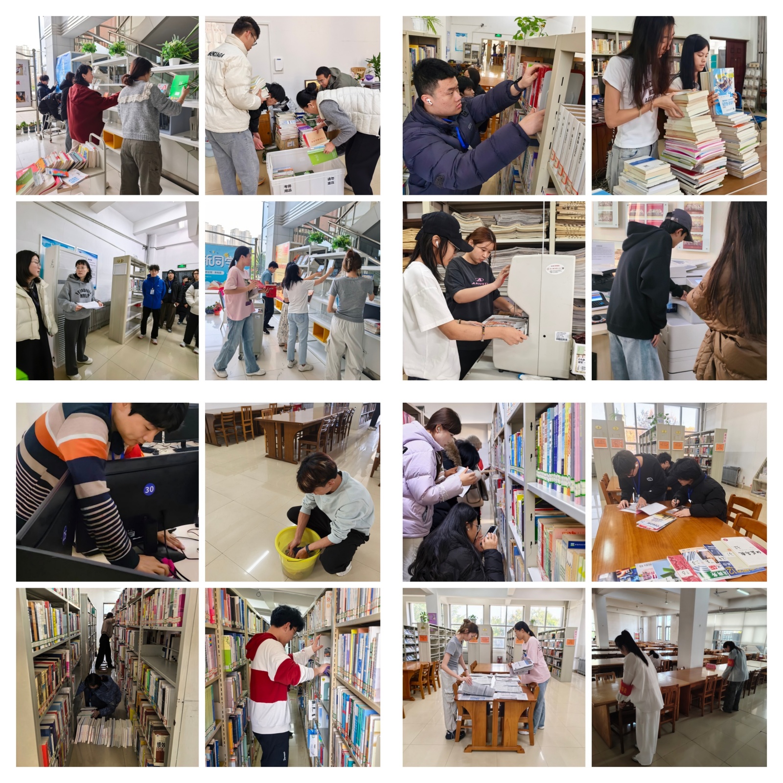 丰富实践内容,提升实践质效。从图书整理、环境清洁、桌椅摆放等基础工作,到主题书展布展、报纸装订,再到AI馆员机、打印机等设备操作,实践内容由浅入深,各岗位工作人员积极联动,助力学生实现知识与技能双提升。
