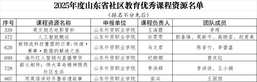 近日,山东省教育厅公布了2025年度社区教育优秀课程资源遴选结果,我院《英文励志电影赏析》等6门课程入选。至此,我院已有40门课程成功入选山东省社区教育优秀课程资源。