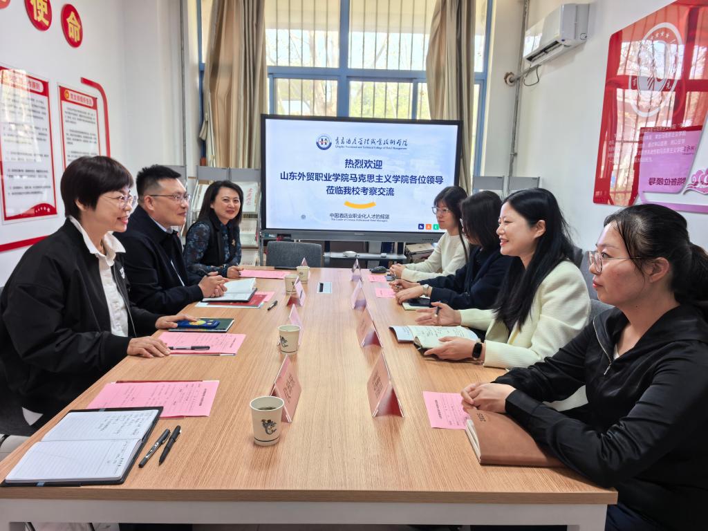 为进一步提升马克思主义学院建设水平,深化思政课改革创新,加强校际共建与合作,2026年4月16日上午,马克思主义学院党总支书记李欣一行4人赴青岛酒店管理职业技术学院马克思主义学院开展思政课共建交流活动。青岛酒店管理职业技术学院马克思主义学院负责人李瑶热情接待了我院一行。